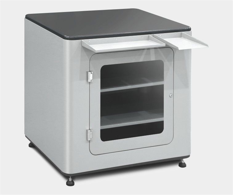 Een stevig staand werkstation met een praktische en open opslagruimte voor het opslaan van materialen en gereedschappen.
